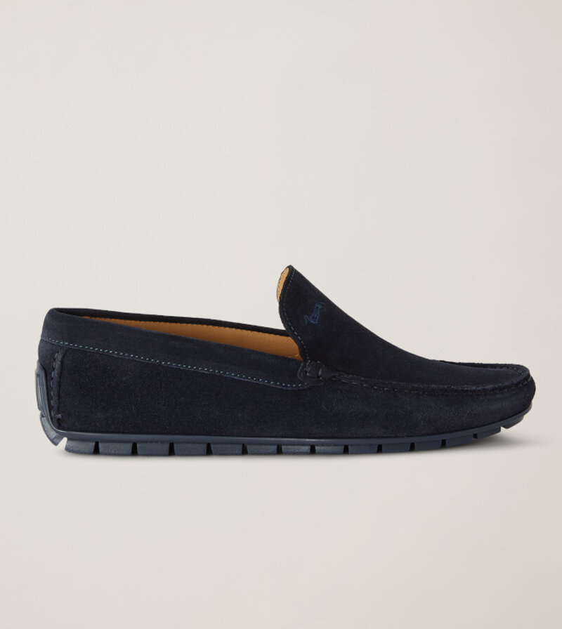 Mocassini eleganti con tomaia in camoscio, caratterizzata da una suola flessibile con tacchetti di gomma per garantire comodità e aderenza. Le cuciture a vista lungo la mascherina ne esaltano l'artigianalità, mentre il logo tono su tono con impunture aggiunge un tocco discreto di raffinatezza. Un design classico che unisce eleganza, comfort e flessibilità, ideale per un look sofisticato e pratico.
